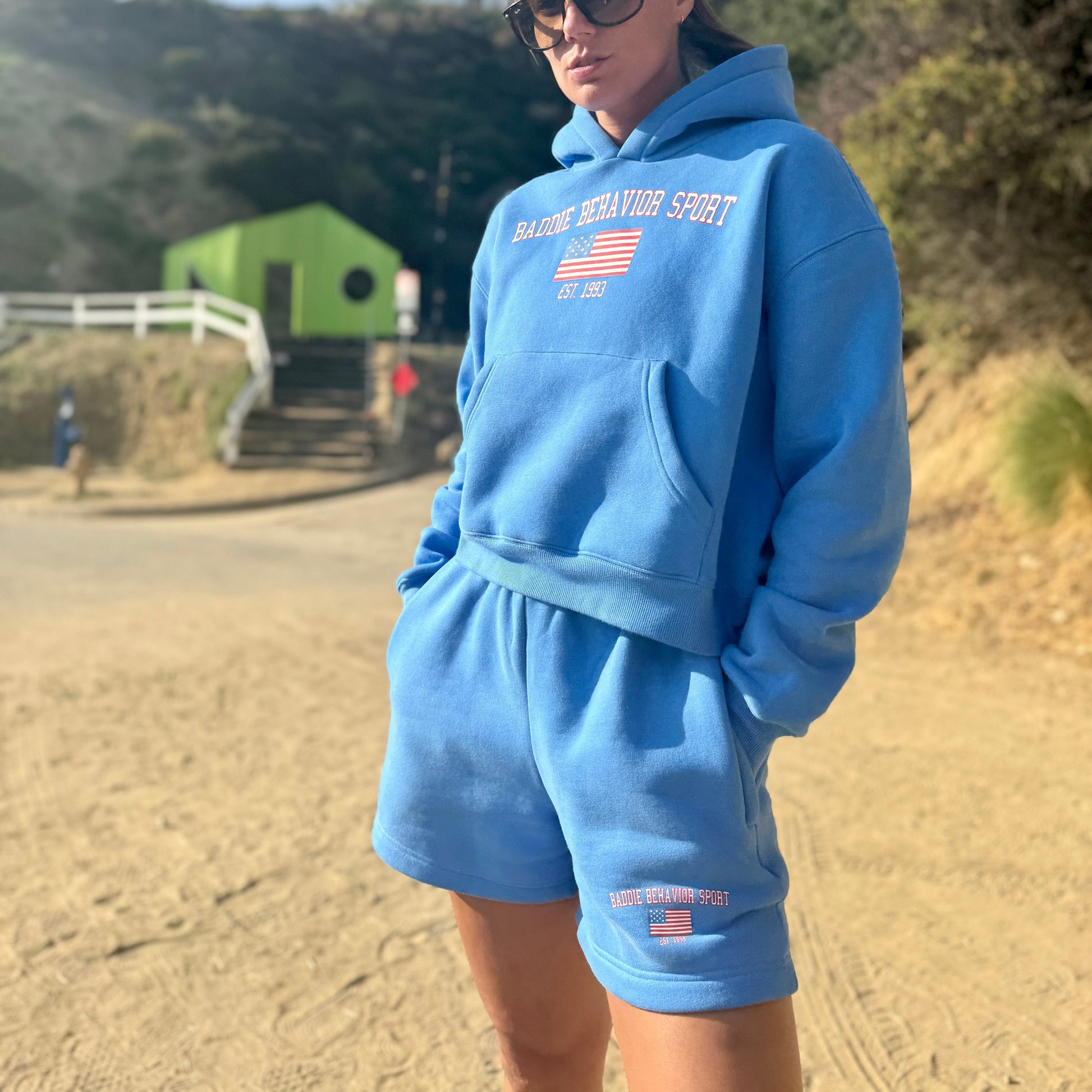 Ready for anything, these shorts are made with a premium cotton fleece, zippered pockets, an interior drawstring with metal aglets and a finished hem. Featuring the classic Baddie Behavior Sport logo on the lower left thigh.