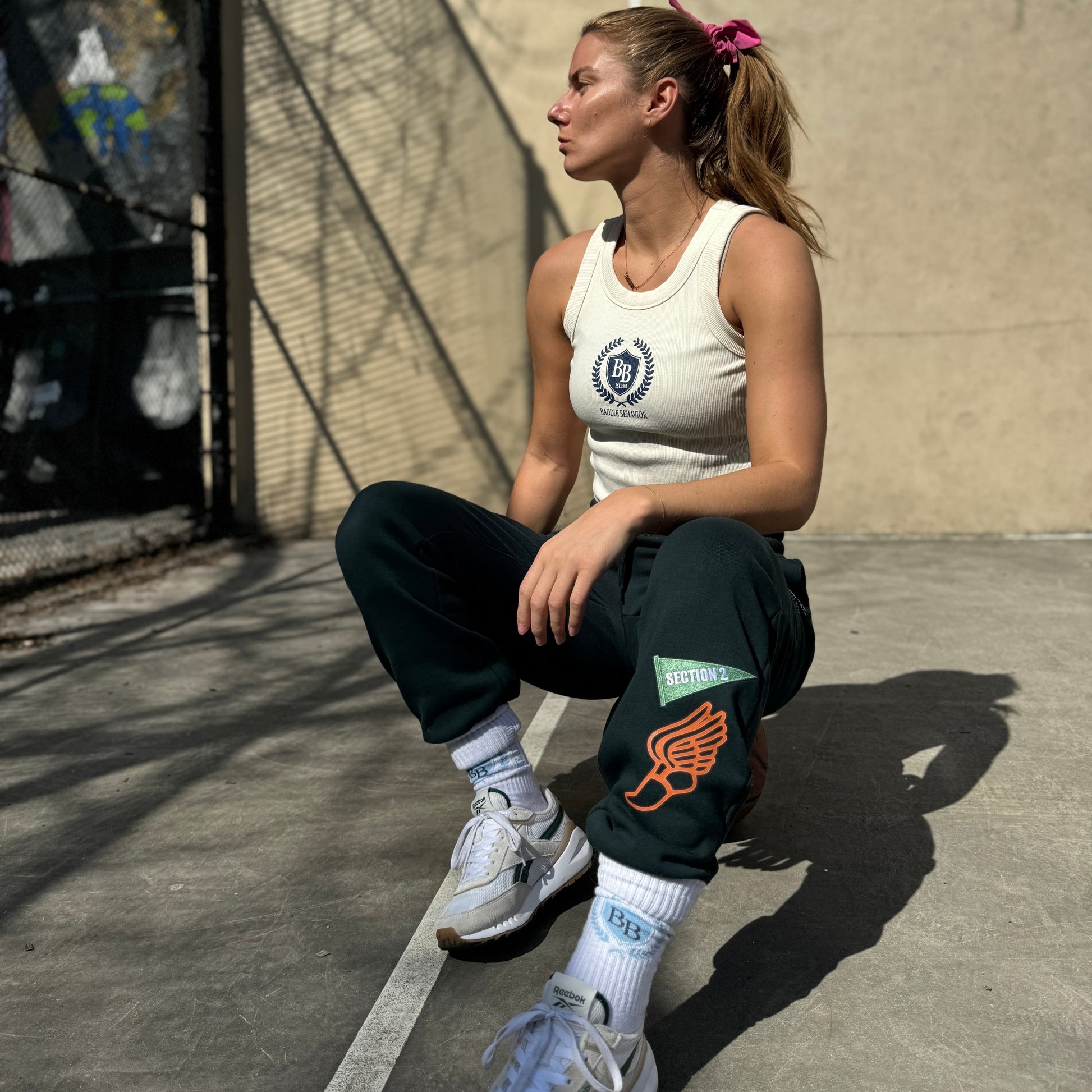The Varsity Sweatpant strikes the perfect balance between a relaxed fit and a tailored look. With BADDIE BEHAVIOR block lettering cascading down the back of the right leg and the iconic BB crest on the front left thigh, these pants are all about the details. A Section 2 patch and orange winged foot on the left leg give a nod to Marjana's school colors and New York roots, making these a standout piece for any casual wardrobe.